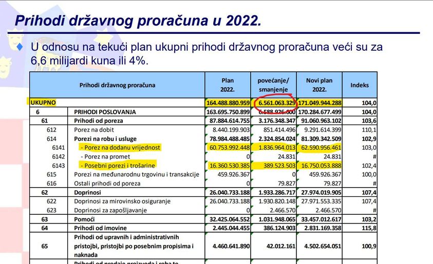 U veljači ove godine vlada je pompozno objavili prvi paket mjera za ublažavanje rasta cijena, a koji je uključivao i smanjenje trošarina na gorivo. I kakav je bio rezultat toga za državni proračun? Rezultat je bio da je sabor u svibnju donio rebalans proračuna u kojem je planirano da će država uprihoditi VIŠE novca od trošarina nego što je to bilo planirano prije smanjenja trošarina. Isto tako, država je u rebalansu proračuna planirala i VIŠE prihoda od PDV-a nego prije smanjenja trošarina. Sad vam već počinje sve to skupa biti malo čudno, jel?