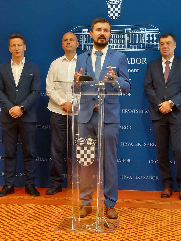 ZAGREB, 21.9.2023. – U Hrvatskom saboru održana je konferencija za medije povodom najavljene porezne reforme. Osim predsjednika stranke Fokus Davora Nađija, okupljenima su se obratili i saborski zastupnik Dario Zurovec i Damir Bajs te gradonačelnik Svetog Ivana Zeline Hrvoje Košćec.