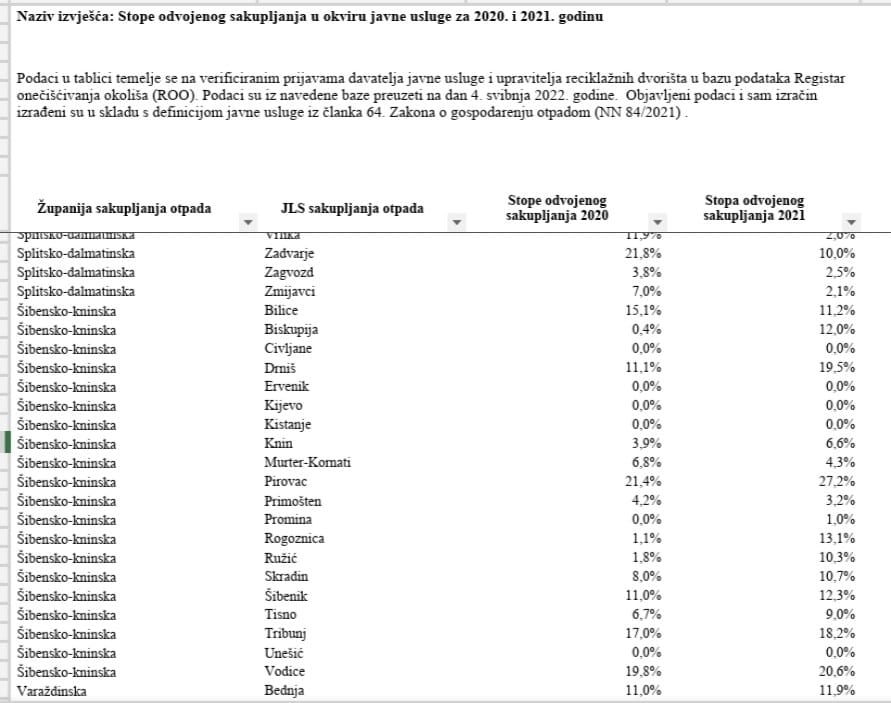 Naša općina po postotku razdvajanja najuspješnija je u gospodarenju otpadom u Šibensko-kninskoj županiji i treća po uspješnosti u Dalmaciji iza Orebića i Vira! ![]()